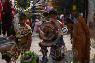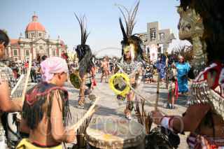 MÉXICO, D.F., 12DICIEMBRE2009.- Danzas ancestrales son representadas sobre la plancha a la entrada de la Basílica de Guadalupe. FOTO: MARCO POLO GUZMÁN HERNÁNDEZ/CUARTOSCURO.COM