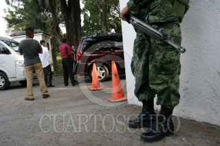 CUERNAVACA, MORELOS; 12DICIEMBRE2009.- Elementos de le estado Mayor, custodian las inmediaciones del Hotel Sumiya, ya que se llevara acabo la boda de Maximiliano Cortazar, Coordinador de Prensa de la Presidencia, y en la cual se espera la llegada del jefe del Ejecutivo. FOTO: GUILLERMO PEREA/CUARTOSCURO.COM
