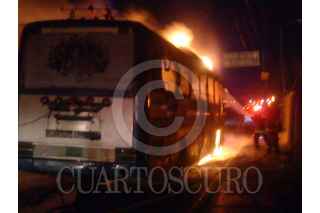 NEZAHUALCOYOTL, ESTADO DE MÉXICO, 12DICIEMBRE2009.- Un Autobús que transportaba peregrinos que visitaron la Basílica de Guadalupe, se calcino al registrarse un corto circuito en el sistema eléctrico de la unidad; dejando varias personas intoxicadas que fueron atendidas en el lugar por unidades de Rescate Municipal de Nezahualcoyotl FOTO: LUIS CARBAYO/CUARTOSCURO.COM