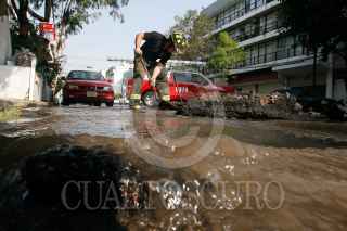 MÉXICO D.F., 12DICIEMBRE2009.- Fuga de Agua Potable que se registró en la calle Pensilvania frente al 237 en la colonia Nápoles perímetro de la Delegación Benito Juárez. FOTO: LUIS CARBAYO/CUARTOSCURO.COM