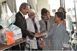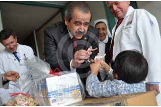 MÉXICO D.F., 13DICIEMBRE2009.- El secretario de Salud, José Ángel Cordova Villalobos visito el Instituto Nacional de Cardiologia en compañia de la maestra Gallardo, presidenta del Comite Coordinador del Voluntariado Nacional de la Secretaria de Salud; los acompaño el director del instituto Marco Antonio Martínez en donde repartieron regalos a los pacientes por motivo de la próxima Navidad. FOTO: EDUARDO MORALES/CUARTOSCURO.COM