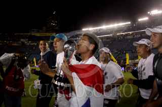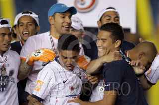 MÉXICO, D.F., 13DICIEMBRE2009.- Oswaldo Martínez en festejo besa el trofeo del campeon de torneo de Apertura 2009, tras vencer a la Máquina cementera en su casa con un marcador global de 6-4. FOTO: SÁSHENKA GUTIÉRREZ/CUARTOSCURO.COM