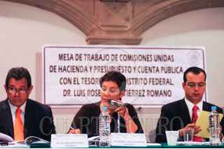 MÉXICO, D.F., 14DICIEMBRE2009.- Luis Rosendo Gutierrez Romano, Diputado Tesorero del Gobierno del Distrito Federal junto a los diputados, Erasto Ensástiga Santiago y Mauricio Tabe Echartea durante la mesa de trabajo de la mesa de comisiones unidas de Hacienda y Presupuesto y cuenta publica. FOTO: CUARTOSCURO.COM