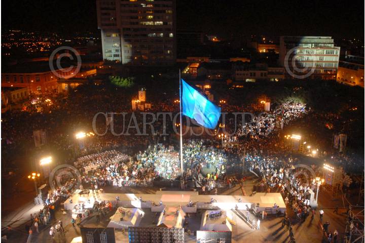 GUATEMALA, GUATEMALA, 14DICIEMBRE2009.- Ingrid Coronado y Rafael Araneda, conductores, durante el décimo primer concierto y semifinal del reallity show de la Academia. que se realizó ante mas de 70 mil personas congregadas en la Plaza de la Constitución (Parque Central). FOTO: CUARTOSCURO.COM