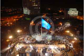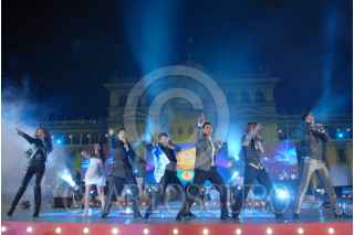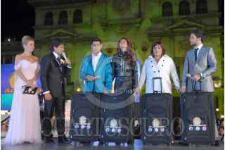 GUATEMALA, GUATEMALA, 14DICIEMBRE2009.- Ingrid Coronado y Rafael Araneda, conductores, durante el décimo primer concierto y semifinal del reallity show de la Academia. que se realizó ante mas de 70 mil personas congregadas en la Plaza de la Constitución (Parque Central). FOTO: CUARTOSCURO.COM