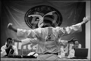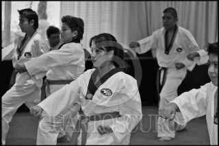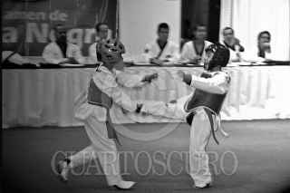 OAXACA, OAXACA, 15DICIEMBRE2009.-Con un jurado integrado por miembros de la Asociación Mexicana de Medallistas Olímpicos y Asociación Mundial de Ganadores Olímpicos, con sede en Atenas Grecia y otras entidades de la república, se dieron cita en conocido hotel de la ciudad para calificar a 35 jóvenes de diferentes edades, en el examen anual para ascender en grados de disciplina del difícil arte de Taekwondo, las calificaciones en combates y formas tienen a su vez técnicas de patadas que contienen variaciones a diversas alturas, con giro, en salto, entre otras. FOTO: MAX NÚÑEZ/CUARTOSCURO.COM