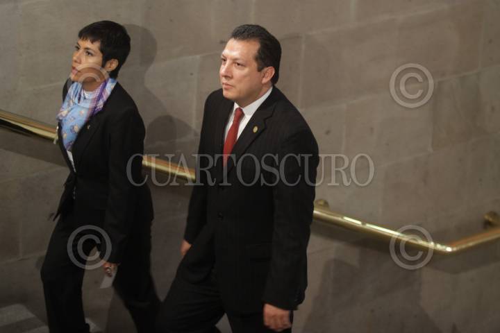 MÉXICO, D.F. 15DICIEMBRE2009.- Felipe Calderon Hinojosa Presidente de México llega acompañado por los ministrosJosé de Jesús Gaudiño y Sergio Vals Hernández a su salida de la suprema corte de justicia donde esta tarde Guillermo Ortiz Mayagoiria rindió su informe anual de labores FOTO: SÁSHENKA GUTIÉRREZ/CUARTOSCURO.COM