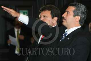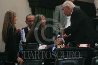 MÉXICO, D.F., 15DICIEMBRE2009.- Dante Delgado Raunuro, senador de Convergencia, pidió licencia para ausentarse de su cargo a partir de enero del año próximo, esto en la última sesión del Senado de la República. En la imagen como un detalle de despedida les obsequio un presente a las asistentes. FOTO: MOISÉS PABLO/CUARTOSCURO.COM