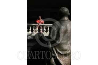 MÉXICO, D.F., 15DICIEMBRE2009.- Un trabajador de limpieza barre los balcones de la sede de la Secretaría de Educación Pública en el Centro Histórico. FOTO: MOISÉS PABLO/CUARTOSCURO.COM