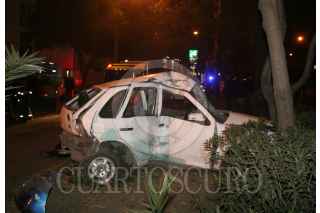 MÉXICO, D.F., 16DICIEMBRE2009.- Un muerto y dos lesionados es el saldo de un choque de un automóvil Pointer contra un árbol del camellón en la lateral del Periférico Sur en la colonia Rinconada Coapa. FOTO: LUZ ACEVEDO/CUARTOSCURO.COM
