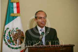 COPENHAGEN, DINAMARCA, 16DICIEMBRE2009.- Felipe Calderón Hinojosa, Presidente de México, durante su mensaje a medios de comunicación. FOTO: ALFREDO GUERRERO/CUARTOSCURO.COM