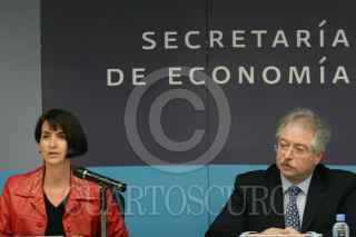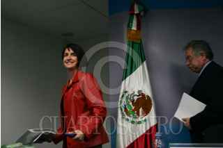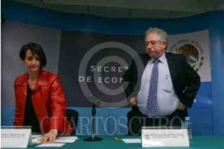 MÉXICO, D.F., 16DICIEMBRE2009.- Lorenza Martínez Trigueros, Subsecretaria de la Industria y Comercio acompañada de Salomón Presburger Slovick Presidente de Concamin, durante la conferencia ofrecida en las instalaciones de la Secretaria de Economía. FOTO: GUILLERMO PEREA/CUARTOSCURO.COM