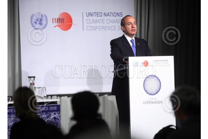 COPENHAGEN, DINAMARCA, 17DICI-EMBRE2009.- Felipe Calderón Hinojosa, Presidente de México y Ban Ki Moon, Secretario General de las Naciones Unidas, durante una reunión. FOTO: ALFREDO GUERRERO/CUARTOSCURO.COM