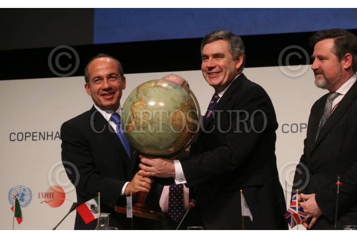 COPENHAGEN, DINAMARCA, 17DICI-EMBRE2009.- Felipe Calderón Hinojosa, Presidente de México y Ban Ki Moon, Secretario General de las Naciones Unidas, durante una reunión. FOTO: ALFREDO GUERRERO/CUARTOSCURO.COM