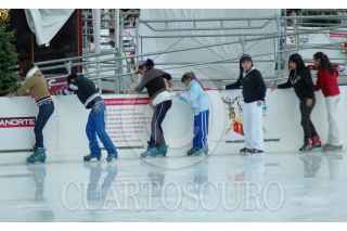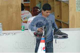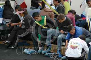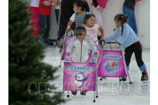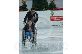 MÉXICO, D.F. 17DICIEMBRE2009.- Niños y jóvenes se sostienen del barandal para evitar una caída en la pista de hielo que se encuentra en el Zócalo de la ciudad. FOTO: RODOLFO ANGULO/CUARTOSCURO.COM