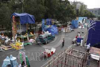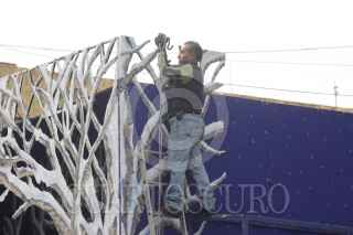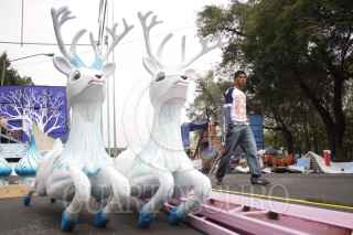 MÉXICO, D.F., 18DICIEMBRE2009.- Sobre la calle de Revillagigedo a un costado de la alameda central, se comenzaron a instalar los escenarios en los cuales se tomaran las ya tradicionales fotos con Santa Claus estas fechas navideñas. FOTO: SÁSHENKA GUTIÉRREZ/CUARTOSCURO.COM