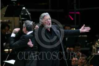 MÉXICO, D.F., 19DICIEMBRE2009.- El tenor Placido Domingo, ofreció un concierto ante miles de personas que se congregaron en la glorieta del Ángel de la Independencia, quienes se deleitaron con la voz del español. FOTO: ROCÍO ORTIZ/CUARTOSCURO.COM