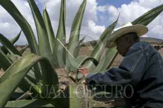 LAZARO CARDENAS, HIDALGO, 20DICIEMBRE2009.- El maguey es la planta donde proviene el pulque, a demás en el mero corazón de ella, se encuentra el "Agua Miel" bebida de consistencia dulce. Su consumo data de épocas prehispánicas y era parte importante de los ritos ceremoniales. Actualmente al igual que la planta, la bebida esta desapareciendo al no haber terrenos y productores que continúen con su elaboración. FOTO: ENRIQUE ORDÓÑEZ/CUARTOSCURO.COM