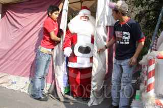 MÉXICO, D.F., 21DICIEMBRE2009.- Un hombre es caracterizado como Santa Claus, en la Alameda central donde se espera la visita de cientos de niños y niñas para tomarse la tradicional fotografia con ese singular personaje. FOTO: SÁSHENKA GUTIÉRREZ/CUARTOSCURO.COM
