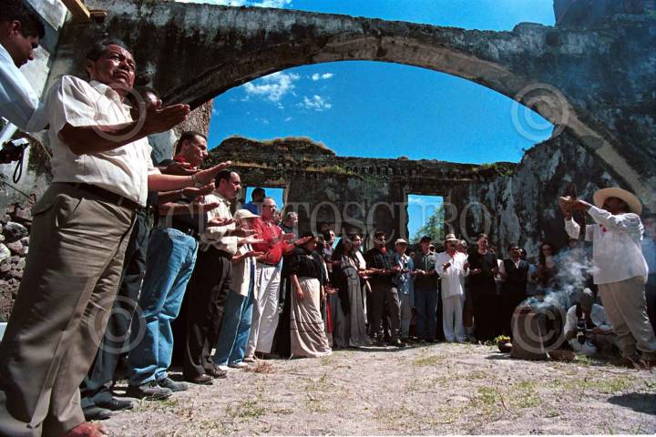 Con un ritual prehispánico para atraer las buenas vibras, fue iniciada la filmación de película Zapata. La cinta es dirigida por Alfonso Arau y filmada en la hacienda de Coauhixtla. FOTO: Moisés Pablo/CUARTOSCURO.COM