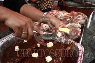 MÉXICO, D.F., 23DICIEMBRE2009.- La familia Montes de Oca trabajan arduamente en la elaboración de cenas navideñas en la colonia Vasco de Quiroga, esta tradición es llevada a cabo desde años atras. El lomo, pierna enchilada, costillas a la bbq, pavos y ensaladas son horneadas desde 24 horas antes, debido a la gran demanda que tienen en dicha colonia previo a la cena navideña. FOTO: SAÚL LÓPEZ/CUARTOSCURO.COM