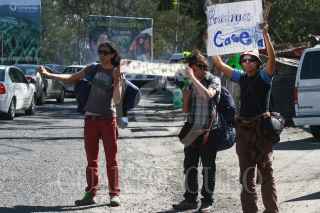 CHALCO, ESTADO DE MÉXICO., 24DICIEMBRE2009.- Una tercia de estudiantes del Instituto Politecnico aprovechan las vacaciones para salir de la ciudad, esto a pesar de contar con poco dinero; ellos esperan que los automovilistas tengan buena voluntad para llegar a su destino. FOTO: SAÚL LÓPEZ/CUARTOSCURO.COM