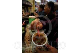 VERACRUZ, VERACRUZ, 25DICIEMBRE2009.- Para aquellos que abusaron de la ingesta de alcohol en esta noche buena, nada mejor que un buen consomé de borrego. A diferencia de otros años se nota la ausencia de comensales que asisten al mercado Hidalgo de esta ciudad, para degustar de este tipo de alimentos propios para curar la "cruda". FOTO: JOSÉ CANDELARIO/CUARTOSCURO.COM