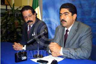 Juan Molinar Horcasitas y Manuél Espino, vocero y secretario general del PAN respectivamente, ofrecieron conferencia de prensa luego de la reunión privada entre miembros de ese partido. A la reunión asistió el nuevo vocero de la Presidencia, Alfonso Durazo. FOTO: Antonio Valdéz/CUARTOSCURO.COM