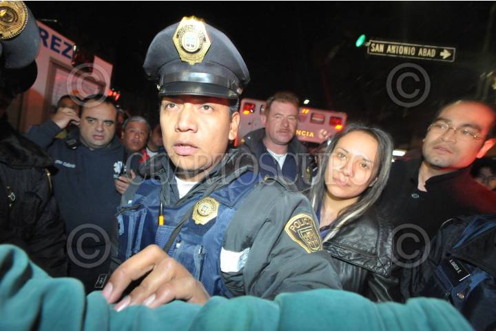 MÉXICO, D.F., 25DICIEMBRE2009.- Elementos de la policía capitalina bajo la orden del oficial Cesar Arnaiz Martínez con indicativo "Buenavista Gama", arremetieron a golpes al fotógrafo Jaime Llera por las fotografías que laboraba de una persona lesionada por un aparatoso accidente en el cruce de las calles Doctor Balmis y Eje Central Lázaro Cárdenas en la colonia Doctores. FOTO: LUZ ACEVEDO/CUATOSCURO.COM