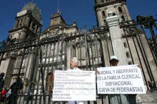 MÉXICO, D.F., 27DICIEMBRE2009.- Manifestantes por los derechos de la comunidad homosexual se manifestaron a las aferas de la Catedral Metropilitana, mientras el Cardenal Norberto Rivera, oficiaba la misa dominical- FOTO: SÁSHENKA GUTIERREZ/CUARTOSCURO.COM