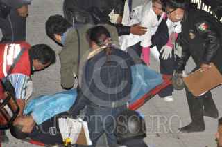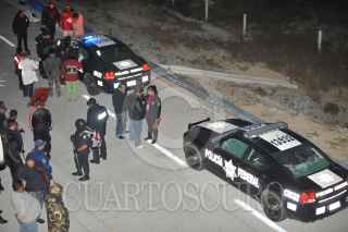 AXAPUSCO, ESTADO DE MÉXICO 27DICIEMBRE2009.- Tres elementos de la policía Federal perdieron la vida al ser emboscados en tres de sus unidades con números económicos 13532, 10121 y 11631 en el Paraje conocido como Xala, ubicado en el Kilómetro 163 de autopista Pachuca Puebla, los hechos sucedieron cuando un vehículo platina en color rojo, aparento estar descompuesto en la parte baja de un puente vehicular, al descender los elementos fueron recibidos con ráfaga de cuerno de chivo de los que ubicaron más de 100 casquillos en el lugar. Al lugar de los hechos arribaron peritos y elementos del ejército Mexicano para resguardar el área y levantar los cuerpos, que fueron trasladados al Ministerio Público de Otumba. FOTO: LUIS CARBAYO/CUARTOSCURO.COM