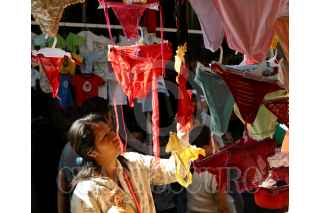MÉXICO, D.F., 28DICIEMBRE2009.- La venta de ropa interior de color rojo, para el amor y amarillo para el dinero, es una costumbre tradicional en los festejos de fin de año; las personas usan estas prendas para recibir el año nuevo según la tradición dependiendo del color de la prenda sera la fortuna que la persona que lo use recibirá en el año venidero. FOTO: RODOLFO ANGULO/CUARTOSCURO.COM