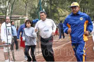 MÉXICO, D.F., 30DICIEMBRE2009.- A muy tempranas horas del día, personas de la tercera edad se reúnen en el Bosque de Chapultepec, para ejercitarse y entrenar para participar en maratones. México ocupa el segundo lugar en obesidad a nivel mundial. Este grave problema de salud pública es factor de riesgo para adquirir diabetes y enfermedades cardiovasculares. Las causas son los malos hábitos de alimentación y sedentarismo. Se estima que en 10 años, el 90 por ciento de los mexicanos sufrirá de sobrepeso y obesidad. FOTO: GUADALUPE CARRILLO/CUARTOSCURO.COM