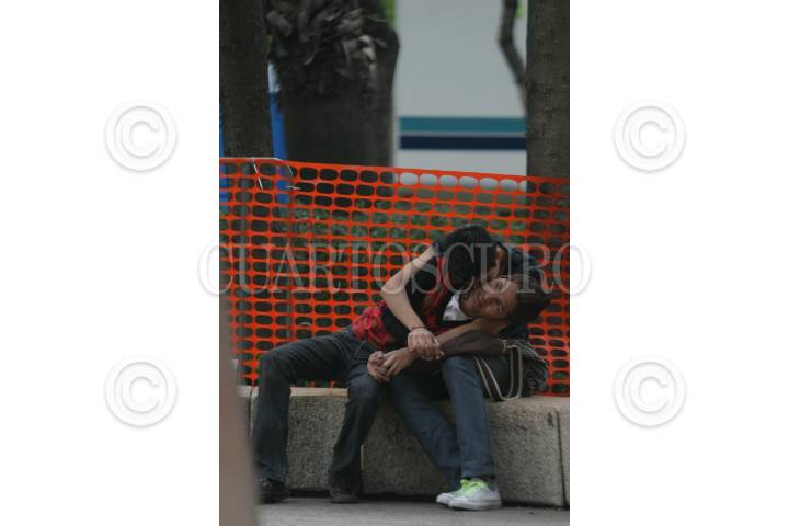MÉXICO, D.F., 30DICIEMBRE2009.- Una pareja se abraza sobre avenida reforma. FOTO: IVÁN STEPHENS/CUARTOSCURO.COM