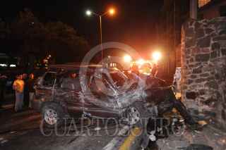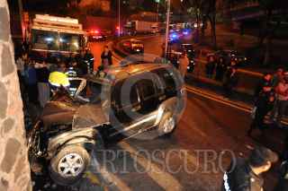 MÉXICO, D.F., 31DICIEMBRE2009.- Esta madrugada una camioneta de color negro se impactó en una barda en Viaducto Tlapan y avenida Insurgentes. Donde viajaban siete jóvenes en estado de ebriedad con rumbo a Cuernavaca, una joven identificada como Doris Lara Nogues de 14 años, murió en el accidente. FOTO: LUZ ACEVEDO/CUARTOSCURO.COM