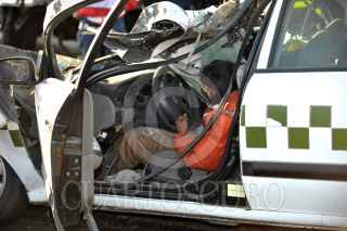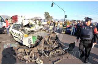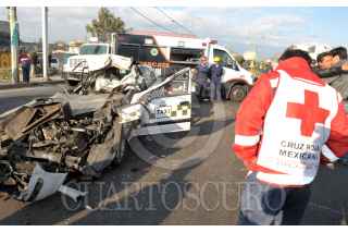 MÉXICO, D.F., 01ENERO2010.- Un sujeto de aproximadamente 30 años, pierde la vida a bordo del taxi que conducía con placas de circulación 4819-JEF del Estado de México. Impactándose contra un microbús de la ruta 49 con placas de circulación 490010 que se encontraba estacionado en el cruce de Av. Periférico a la altura de Av. León de los Aldamas en la colonia San Felipe de Jesús en perímetro de la Delegación Gustavo A. Madero. FOTO: LUIS CARBAYO/CUARTOSCURO.COM