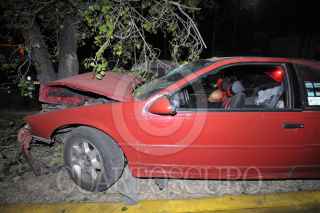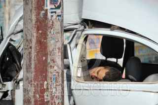 MÉXICO, D.F., 01ENERO2010.- Un sujeto de aproximadamente 40 años, pierde la vida al estrellarse en su auto Thunder bird placas de circulación LWD-9377 en el que viajaba como copiloto. Sobre la Avenida San Juan de Aragón a la altura de la calle Puerto Veracruz en la colonia Casas Alemán en perímetro de la Delegación Gustavo A. Madero. FOTO: LUIS CARBAYO/CUARTOSCURO.COM