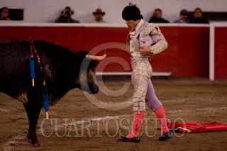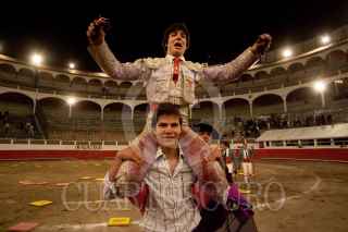 QUERÉTARO, QUERÉTARO, 01ENERO2010.- El novillero José Arevalo durante su actuación en la apertura de la temporada de toros en la Plaza Santa María de Querétaro. En esta corrida salió en hombros al cortar cuatro orejas. FOTO: DEMIAN CHÁVEZ/CUARTOSCURO.COM