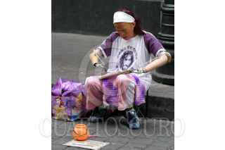 MÉXICO, D.F., 02ENERO2010.- Una persona discapacitada teje los productos que pone a la venta sobre una banqueta en las calles de la ciudad. Las autoridades federales han anunciado el fin de la crisis aunque la mayoría de la gente prevé que las mejoras en sus bolsillos tardará en recuperarse. FOTO: RODOLFO ANGULO/CUARTOSCURO.COM