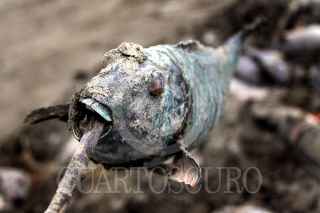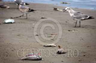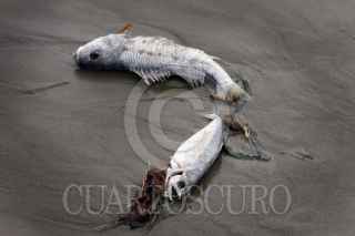 VERACRUZ, VERACRUZ, 02ENERO2010.- Cientos de peses amanecieron muertos este sábado a la orilla de la playa norte en las costas del Golfo de México, pescadores de la zona dieron aviso a las autoridades quienes llegaron al lugar para constatar el daño ecológico, tomar muestras y analizar la causa misma que pudiera ser la contaminación o una marea roja inusual. FOTO: FÉLIX MÁRQUEZ/CUARTOSCURO.COM