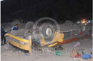 MEXICALI, BAJA CALIFORNIA, 02ENERO2009.- Un camión de la empresa Tierra del Sol, que transportaba a 35 jornaleros agrícolas y que viajaba a exceso de velocidad, cayó a un barranco de aproximadamente 250 metros de profundidad en el kilómetro 44 de la autopista La Rumorosa. El saldo es de 14 muertos y 21 heridos que se encuentran en delicado estado de salud. Reportes oficiales indican que el accidente ocurrió aproximadamente a las 4:00 horas de esta madrugada. FOTO: SAÚL ONTIVEROS/EL MEXICANO/CUARTOSCURO.COM