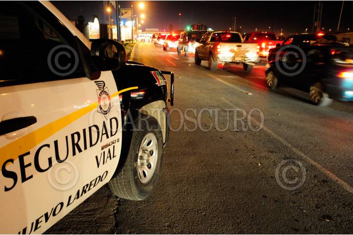 NUEVO LAREDO, TAMAULIPAS, 02ENERO2010.- El éxodo de paisanos que viajan del interior de la República Mexicana hacia los Estados Unidos después de las fiestas decembrinas, comienza a llegar a los puentes internacionales uno y dos de esta ciudad fronteriza. Autoridades municipales prevén que haya un cruce de alrededor de 8.500 vehículos por día. FOTO: DARIO URIBE/CUARTOSCURO.COM