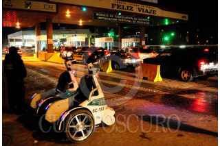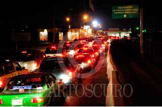 NUEVO LAREDO, TAMAULIPAS, 02ENERO2010.- El éxodo de paisanos que viajan del interior de la República Mexicana hacia los Estados Unidos después de las fiestas decembrinas, comienza a llegar a los puentes internacionales uno y dos de esta ciudad fronteriza. Autoridades municipales prevén que haya un cruce de alrededor de 8.500 vehículos por día. FOTO: DARIO URIBE/CUARTOSCURO.COM