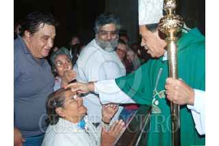 El cardenal Norberto Rivera, ofició la misa en la Catedral Metropolitana este medio día. Al término de la ceremonia ofrece la bendición a una de sus feligreses. FOTO: Moisés Pablo/CUARTOSCURO.COM