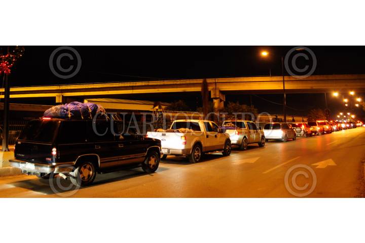 NUEVO LAREDO, TAMAULIPAS, 02ENERO2010.- El éxodo de paisanos que viajan del interior de la República Mexicana hacia los Estados Unidos después de las fiestas decembrinas, comienza a llegar a los puentes internacionales uno y dos de esta ciudad fronteriza. Autoridades municipales prevén que haya un cruce de alrededor de 8.500 vehículos por día. FOTO: DARIO URIBE/CUARTOSCURO.COM