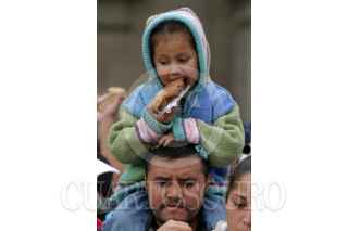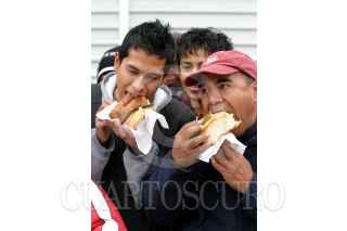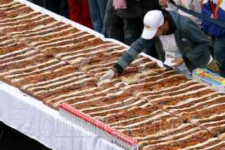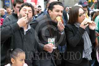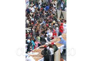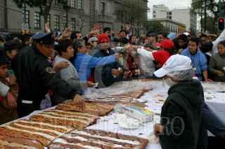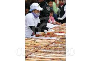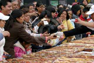 MÉXICO, D.F., 03ENERO2010.- Cientos de capitalinos acudieron a degustar la monumental Rosca de Reyes Bicentenario que rompió el record Guinness como la rosca de mayor peso y porciones que rodeo completamente el Zócalo capitalino. FOTO: RODOLFO ANGULO/CUARTOSCURO.COM