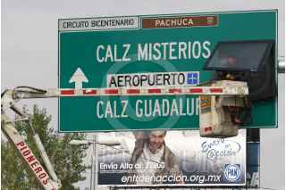 MÉXICO, D.F., 04ENERO2010.- Un trabajador de la empresa SEMEX arregla un letrero vial sobre la avenida Circuito Interior. FOTO: SAÚL LÓPEZ/CUARTOSCURO.COM