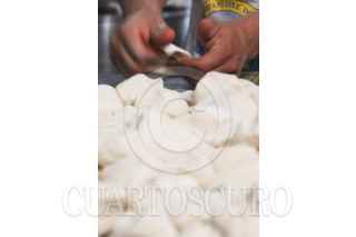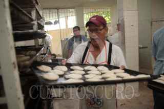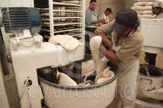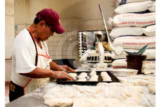 VILLAHERMOSA, TABASCO, 05ENERO2010.- Panaderos procesan la harina, le dan forma para el pan que luego hornean. Dicho proceso se realiza en la panificadora Guayabal propiedad de don Juan Castañeda, donde este día elaboran especialmente la rosca de reyes. FOTO: MARCO POLO GUZMÁN HERNÁNDEZ/CUARTOSCURO.COM
