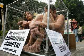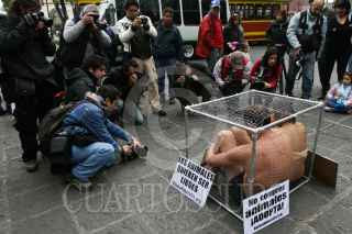 MÉXICO, D.F., 05ENERO2010.- Activistas de la organización Anima Naturalis se manifestaron en contra de la compra de mascotas; argumentaron que es mejor adoptarlas durante esta fecha de regalos de Reyes Magos. FOTO: ISAAC ESQUIVEL/CUARTOSCURO.COM