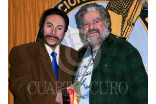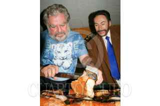MÉXICO D.F., 05ENERO2010.- El astrólogo, Esteban Mayo, junto a el Brujo Mayor, se saludan de mano a su llagada a las instalaciones de la Asosiacion Nacional de Locutores de México donde realizaron predicciones tanto de política como espectáculos y medio ambiente, en el lugar también realizaron la tradicional partida de la Rosca de Reyes. FOTO: ENRIQUE ORDÓÑEZ/CUARTOSCURO.COM